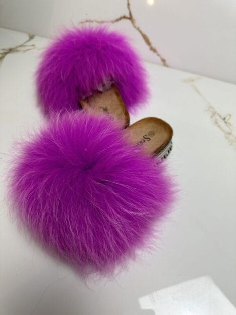 Klapki z Naturalnym Futrem – Jenot fiolet