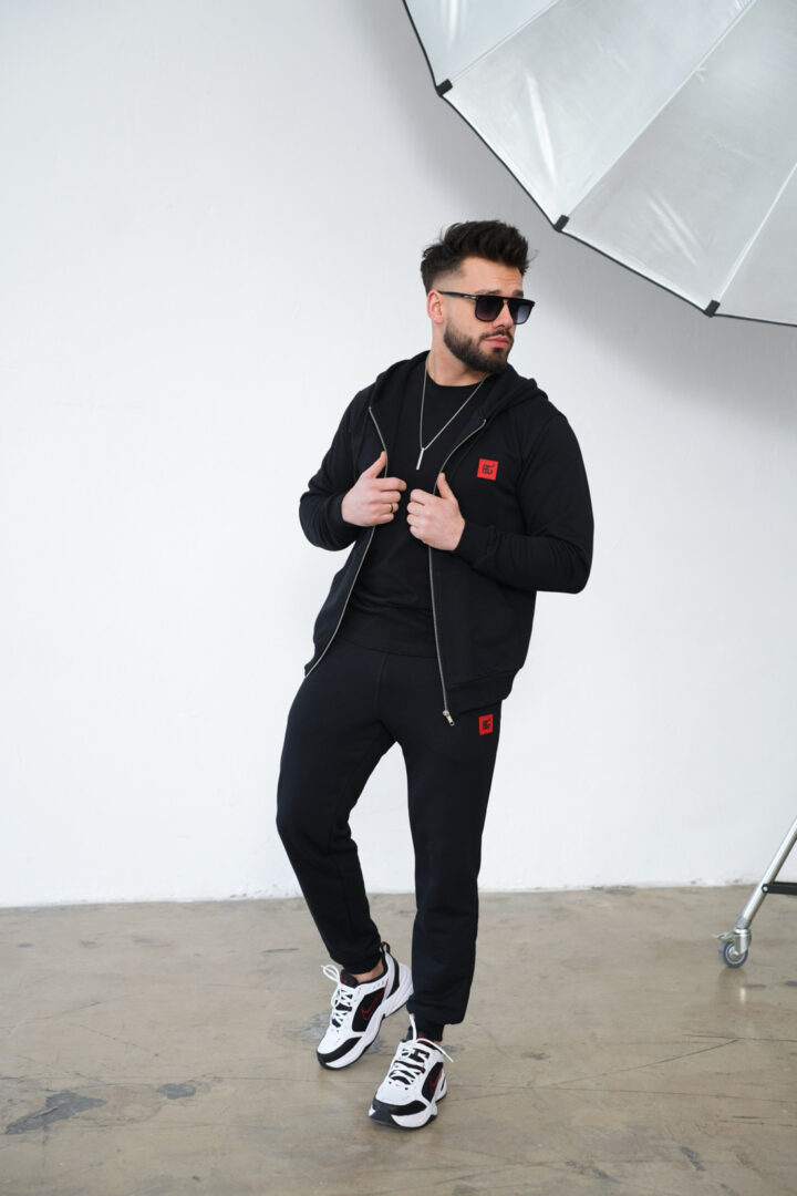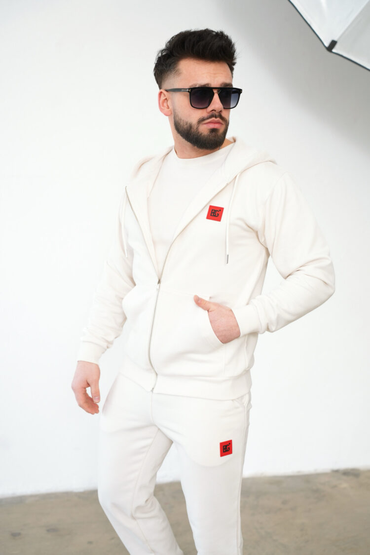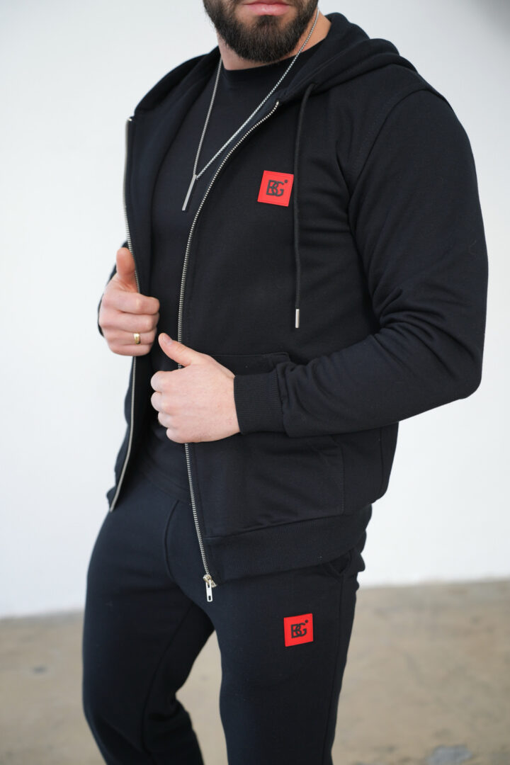 Opis produktu: Bluza męska BG ROMA z wysokiej jakości bawełny nieocieplanej. Klasyczna bluza z żelową naszywką z logo marki BG Brandenburg Couture na piersi. Bluza wykończona ściągaczami, zapinana na metalowy suwak. Posiada kieszenie oraz kaptur ze sznurkiem.