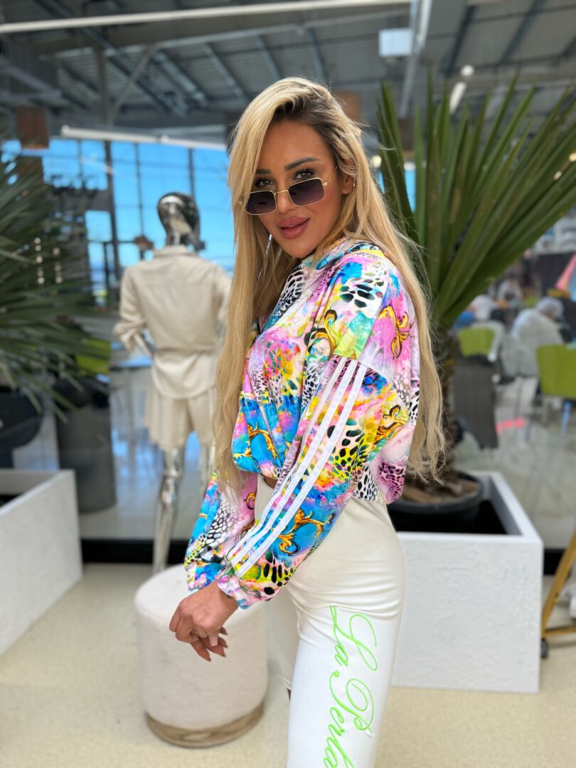 Dopasowane kolarki wykonane z elastycznego, prążkowanego materiału, który pięknie układa się na sylwetce i podkreśla kształty. Model z wysokim stanem na wygodnej gumie, zapewniającej komfort noszenia i dobre dopasowanie w talii. Na nogawce znajduje się stylowy, ozdobny napis, który nadaje całości modowego charakteru. Idealne zarówno do sportowych stylizacji, jak i codziennych outfitów.