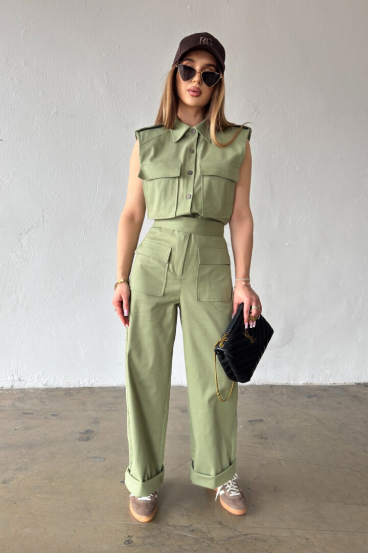 Opis produktu: Kombinezon damski BG MANGO z bawełnianego jeansu. Model zapinany na suwak oraz kokosowe guziki. Pasek w zestawie do wiązania. Prosta nogawka. Logowanie marką BG na plecach. Poduszki w ramionach. Model kombinezonu świetnie sprawdzi się do casualowych oraz eleganckich stylizacji.
