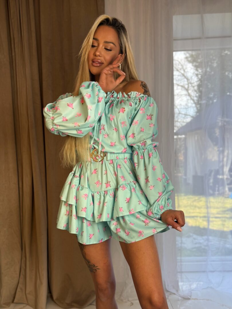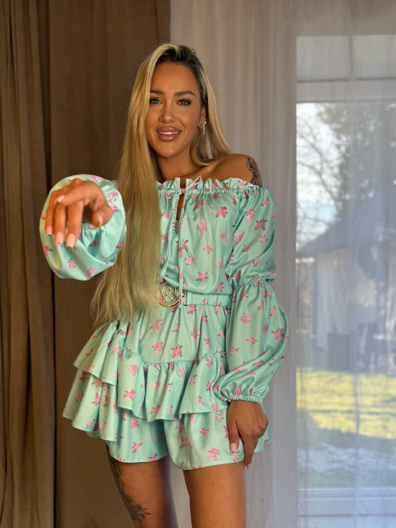 Kobiecy kombinezon o eleganckim, a jednocześnie lekkim charakterze. Model z długimi rękawami zakończonymi delikatnym ściągaczem, które subtelnie się układają i dodają całości lekkości. Góra o luźniejszym kroju zapewnia komfort noszenia i swobodę ruchów. W talii wszyta elastyczna gumka, która pięknie podkreśla sylwetkę oraz modeluje figurę. Dół wykończony warstwową, falującą falbaną, nadającą całości kobiecego i romantycznego efektu. Kombinezon jest wygodny, stylowy i idealnie sprawdzi się zarówno na co dzień, jak i na bardziej wyjątkowe okazje