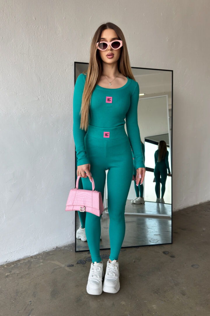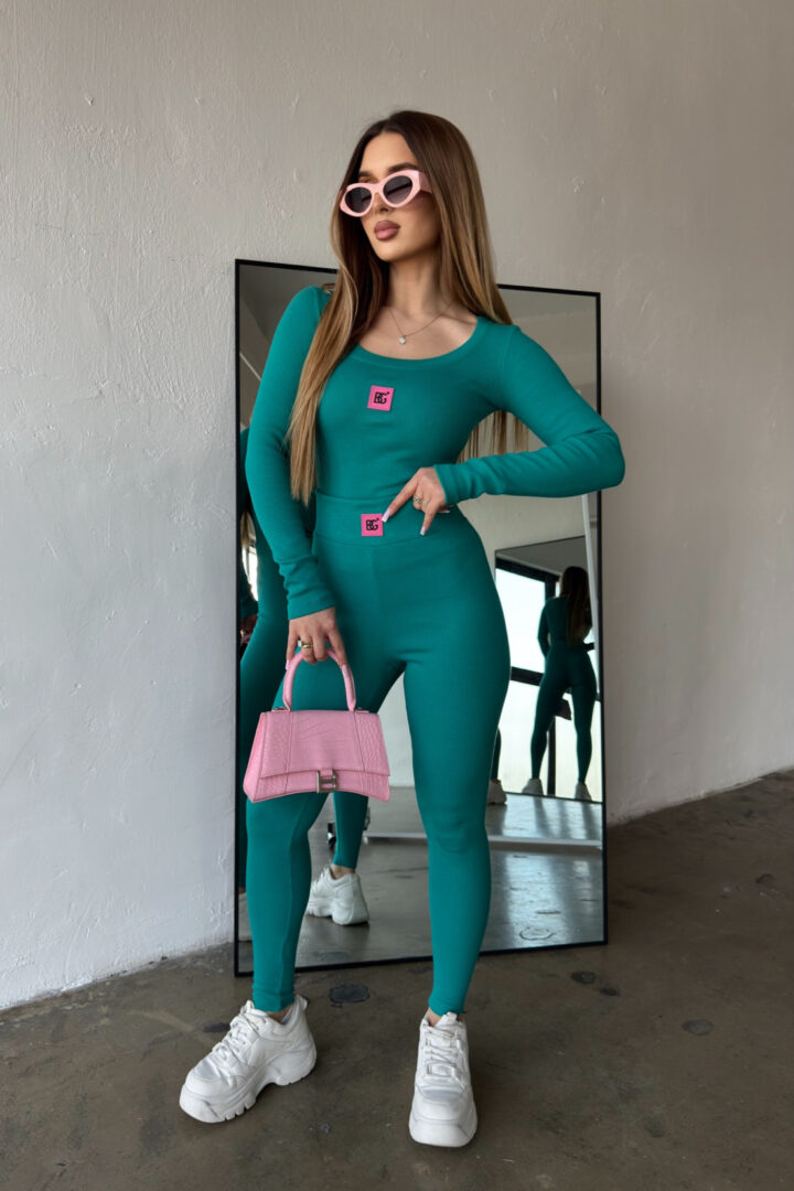 Opis produktu: Komplet damski BG MAMBA z wysokiej jakości prążka bawełnianego. Elastyczny materiał dopasowuje się do sylwetki. Komplet składa się z bluzki oraz legginsów. Logowanie różowym BG na środku. Wysoki stan legginsów oraz szeroka guma zapewnia maksymalne dopasowanie.