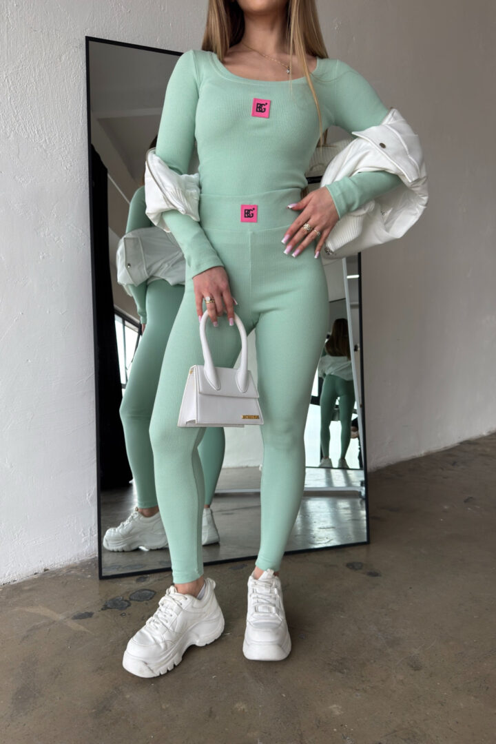 Opis produktu: Komplet damski BG MAMBA z wysokiej jakości prążka bawełnianego. Elastyczny materiał dopasowuje się do sylwetki. Komplet składa się z bluzki oraz legginsów. Logowanie różowym BG na środku. Wysoki stan legginsów oraz szeroka guma zapewnia maksymalne dopasowanie.