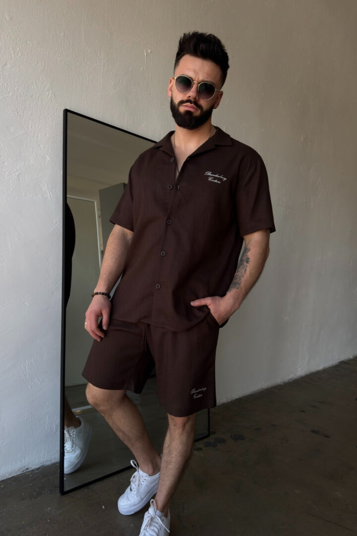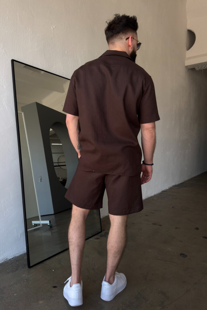 Komplet lniany męski BG Latino | gorzka czekolada