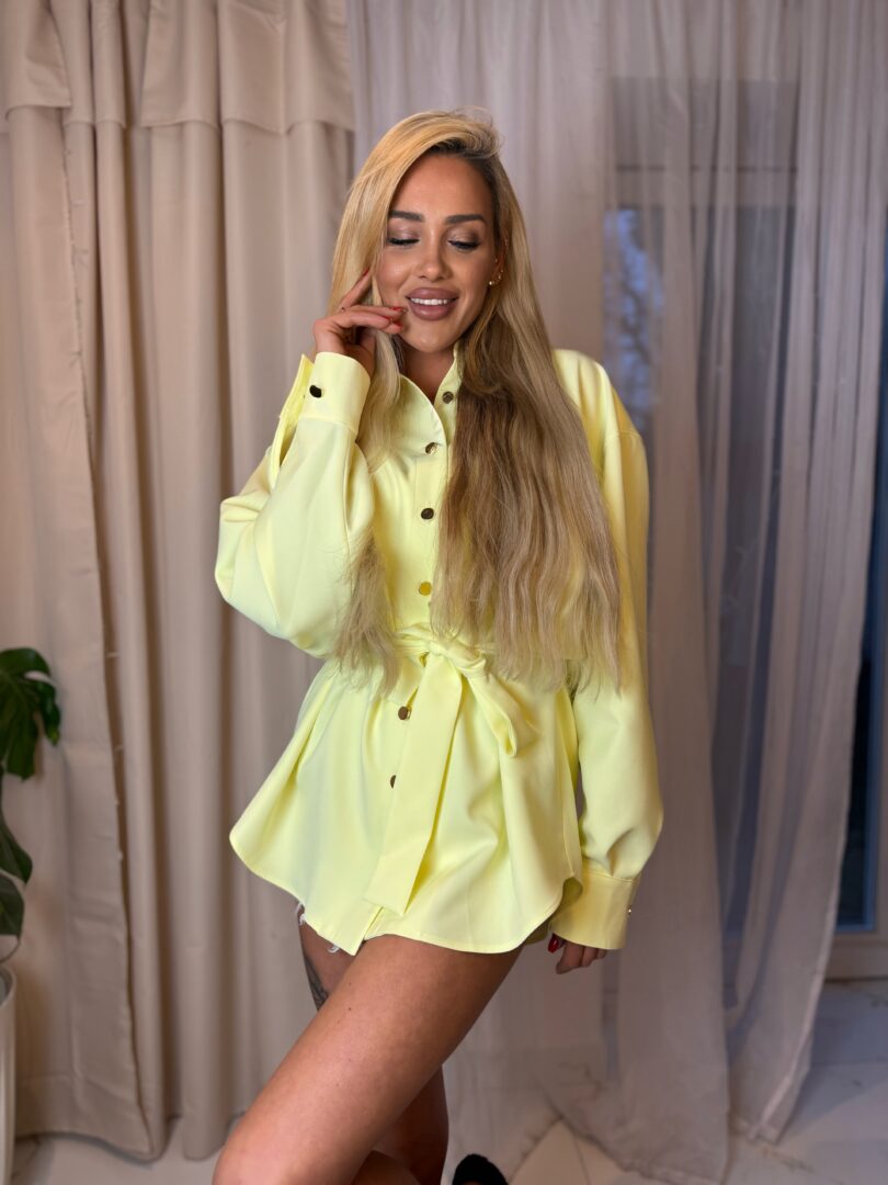 Modna koszula o luźnym, oversize’owym kroju, która idealnie wpisuje się w trendy wiosenno-letnie. Wykonana z miękkiego, przyjemnego w dotyku materiału, świetnie układa się na sylwetce i zapewnia komfort noszenia przez cały dzień. Klasyczny kołnierzyk i zapięcie na guziki nadają jej uniwersalnego charakteru, dzięki czemu możesz stylizować ją zarówno na sportowo, jak i bardziej fashion.