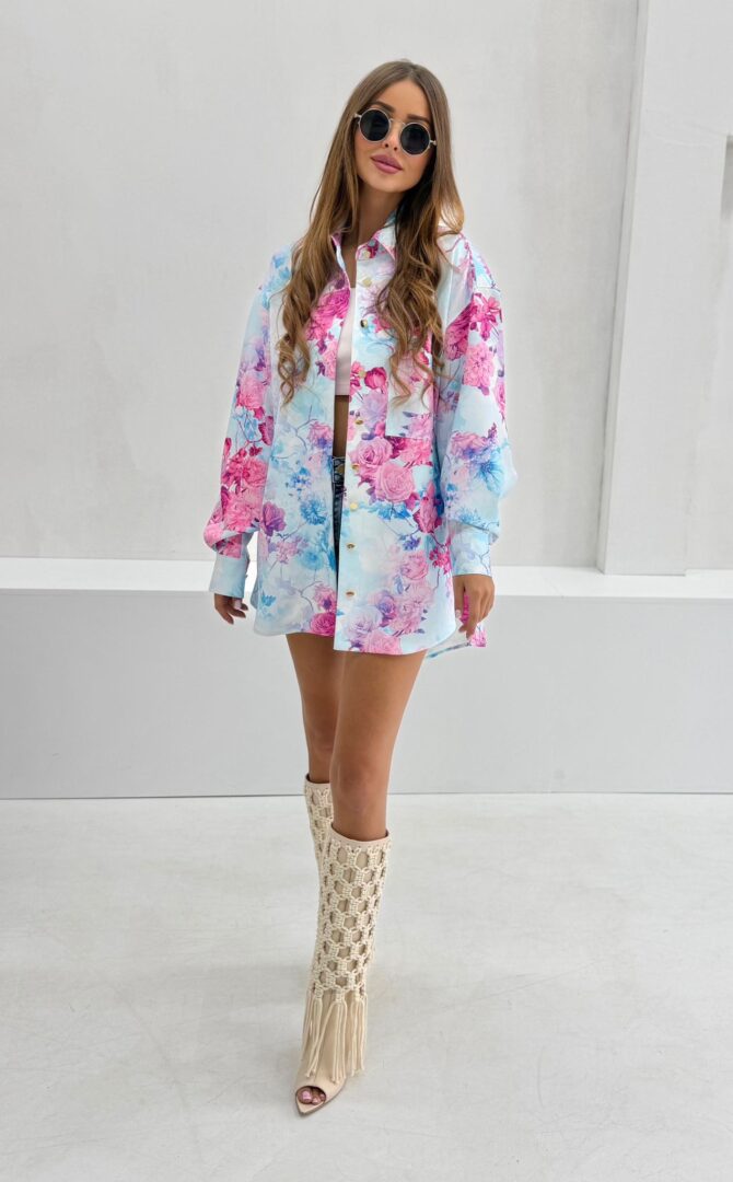 Modna koszula o luźnym, oversize’owym kroju, która idealnie wpisuje się w trendy wiosenno-letnie. Wykonana z miękkiego, przyjemnego w dotyku materiału, świetnie układa się na sylwetce i zapewnia komfort noszenia przez cały dzień. Klasyczny kołnierzyk i zapięcie na guziki nadają jej uniwersalnego charakteru, dzięki czemu możesz stylizować ją zarówno na sportowo, jak i bardziej fashion.