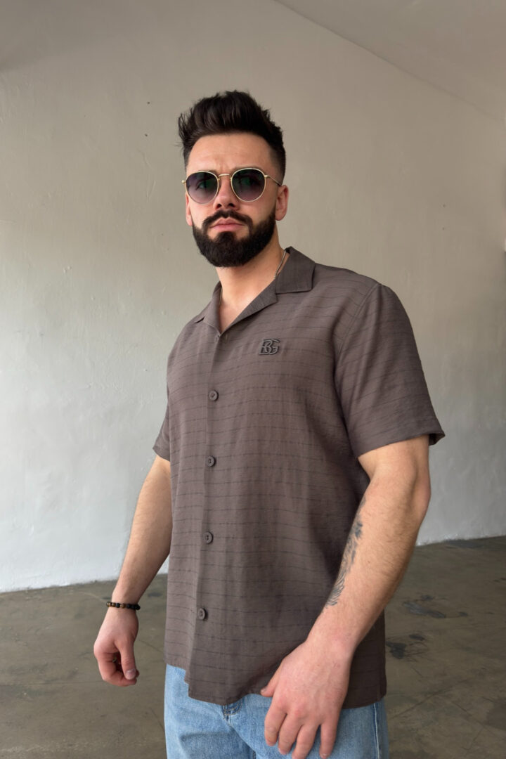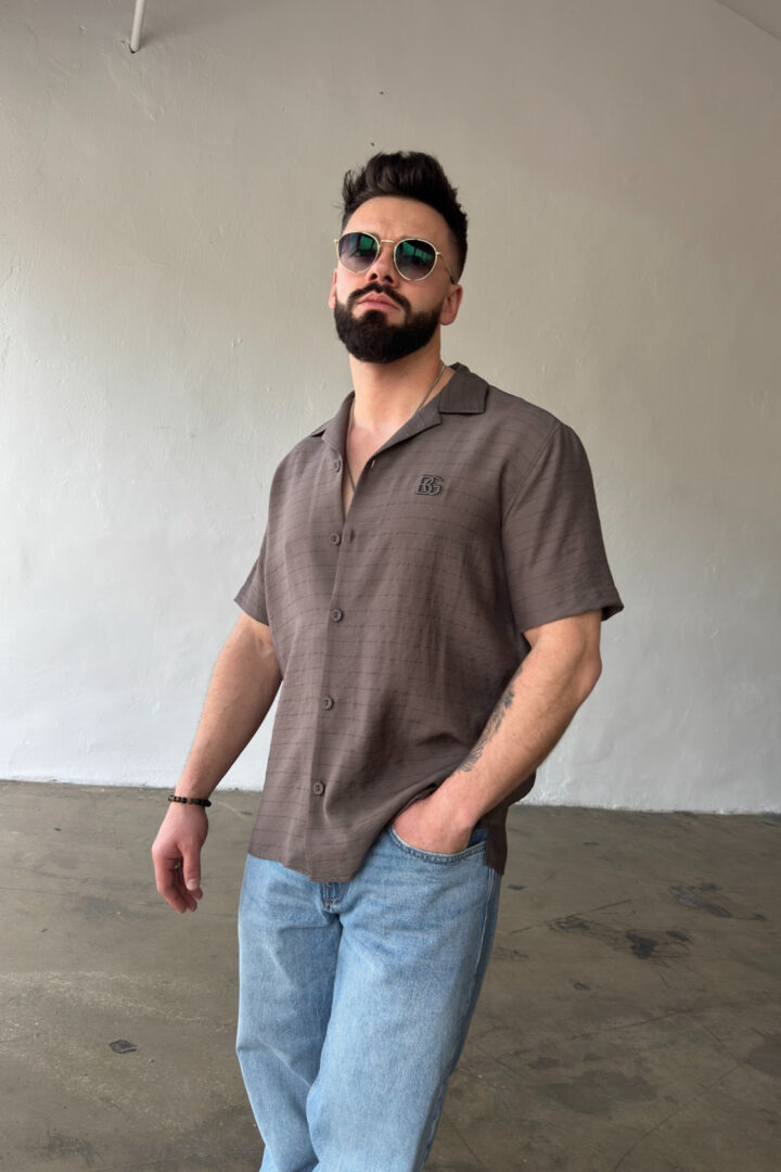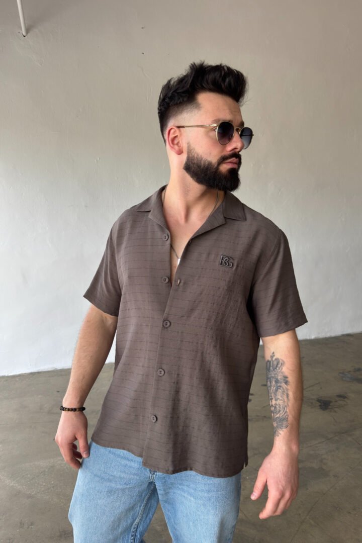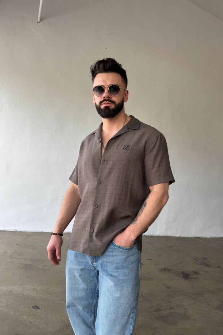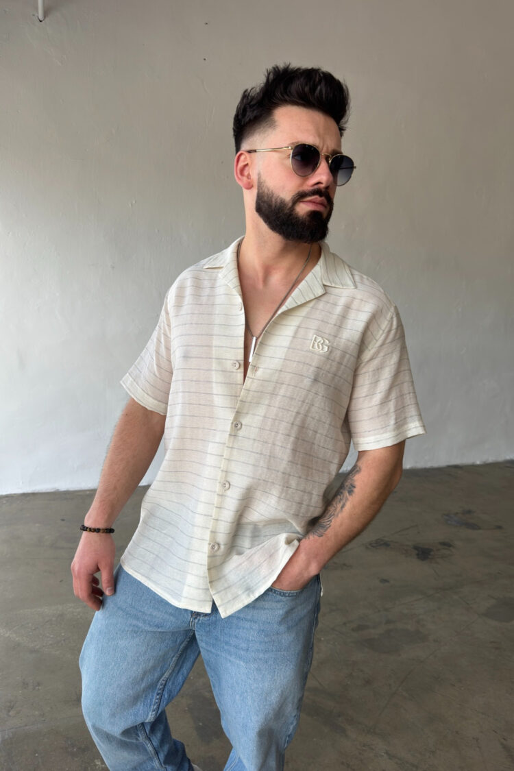 Opis produktu: Koszula męska BG MONSUN. Koszula wykonana z wysokiej jakości tkaniny wiskozowej z domieszką lnu. Koszula bardzo przewiewna o luźnym kroju z krótkim rękawem zapinana na guziki. Koszula ozdobiona haftowanym monogramem BG na sercu.