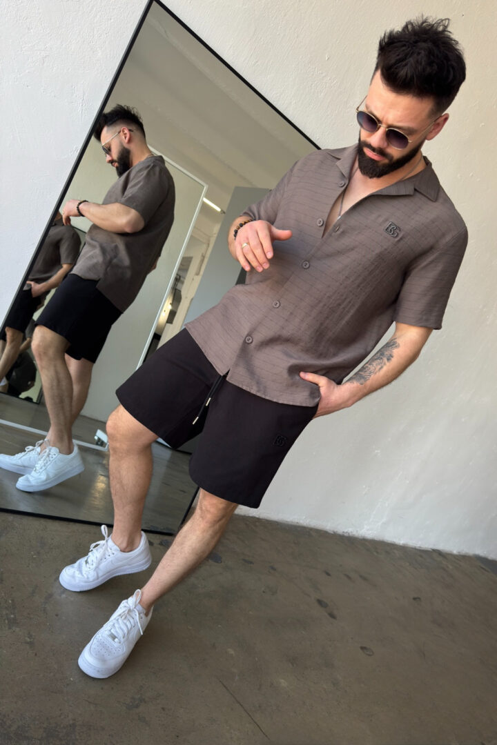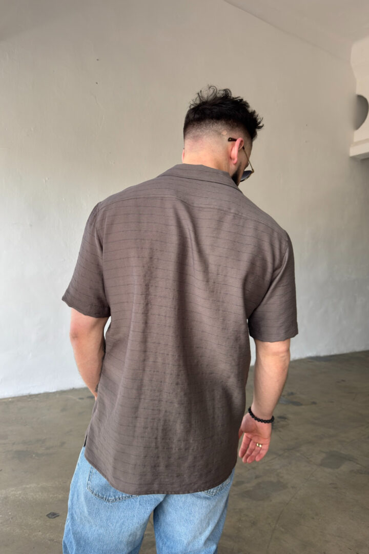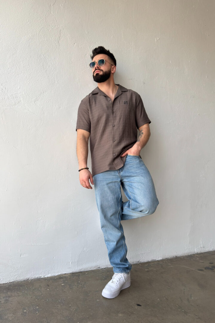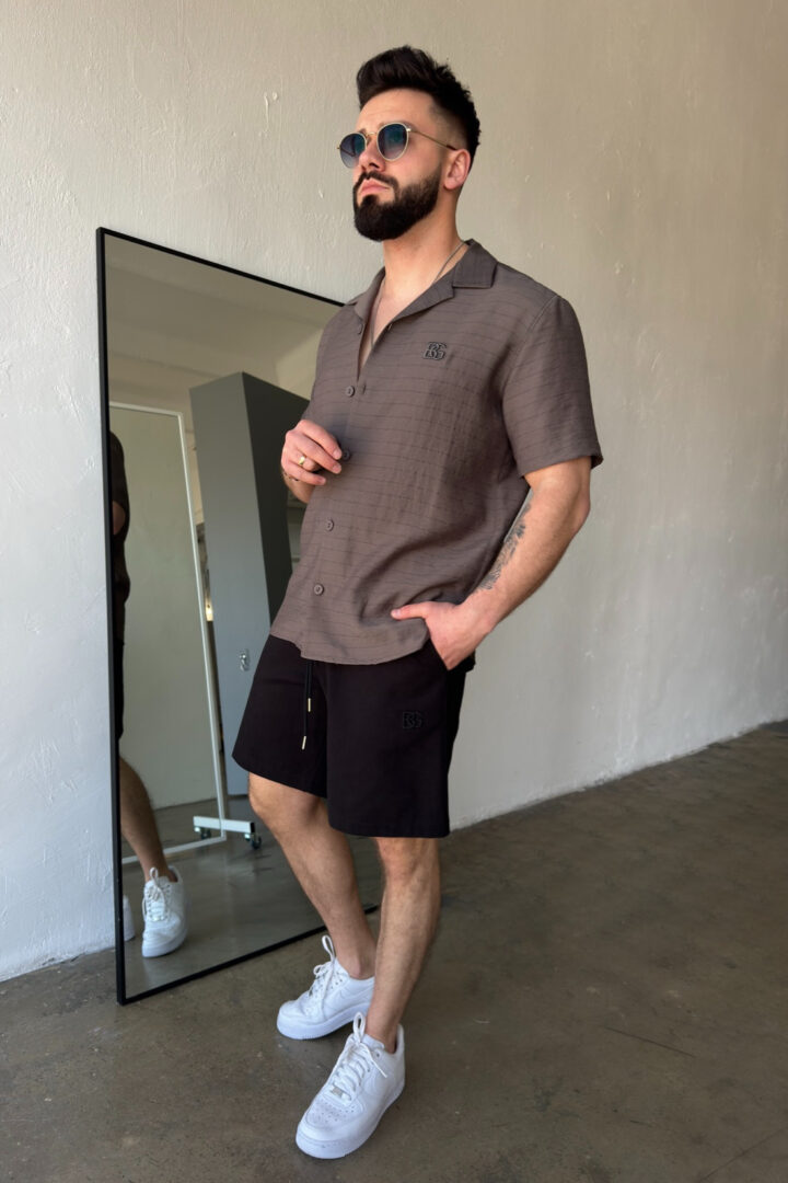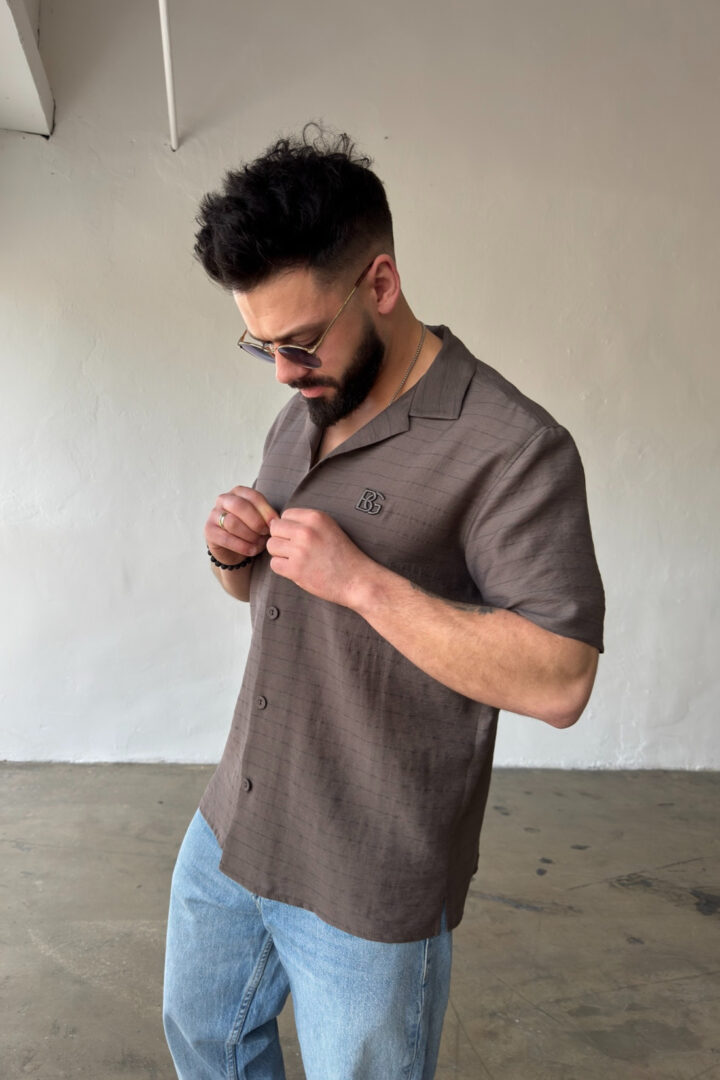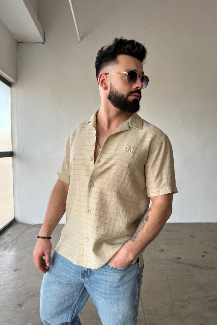 Opis produktu: Koszula męska BG MONSUN. Koszula wykonana z wysokiej jakości tkaniny wiskozowej z domieszką lnu. Koszula bardzo przewiewna o luźnym kroju z krótkim rękawem zapinana na guziki. Koszula ozdobiona haftowanym monogramem BG na sercu.
