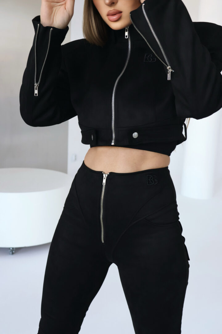 Opis produktu: Kurtka zamszowa BG HELL ze srebrnym suwakiem. Kurtka posiada zdobne przeszycia, wysokie poduszki w ramionach oraz logo marki BG na przodzie. Suwaki w rękawach. Ozdobne napy w dole kurtki oraz w stójce. Kurtka na podszewce