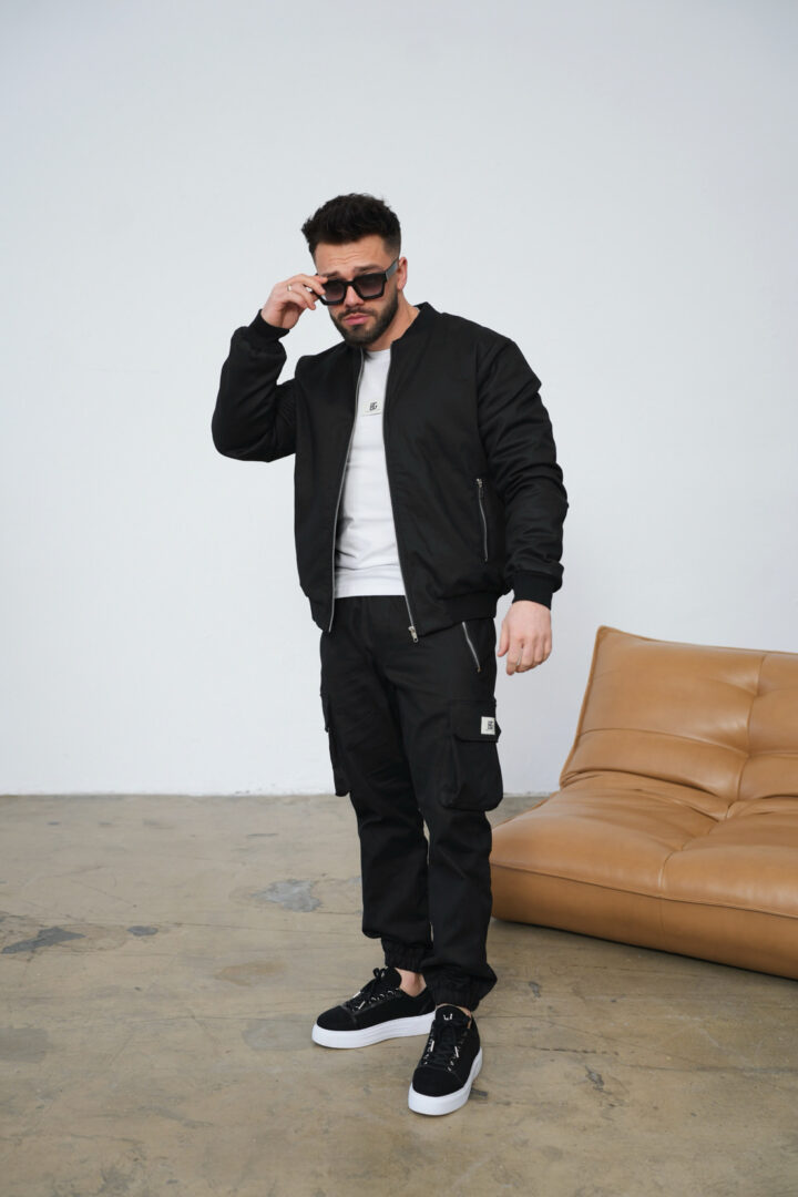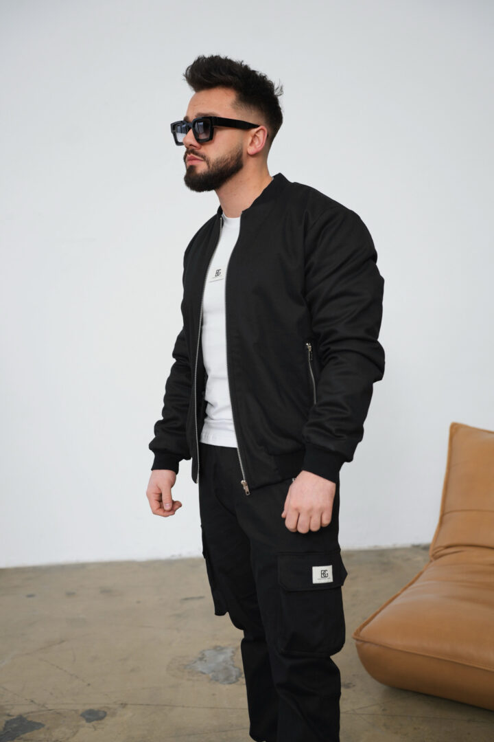 Opis produktu: Kurtka męska BG REPEAT z wysokiej jakości bawełnianego jeasnu. Klasyczna bomberka męska zapinana na suwak. Na przodzie dwie kieszenie również zapinane na suwak. Dół kurtki, mankiety oraz kołnierz wykończone bawełnianym ściągaczem. Kurtka na podszewce z lekkim ocieplaczem. Na tyle duża naszywka z logo marki BG Brandenburg Couture.