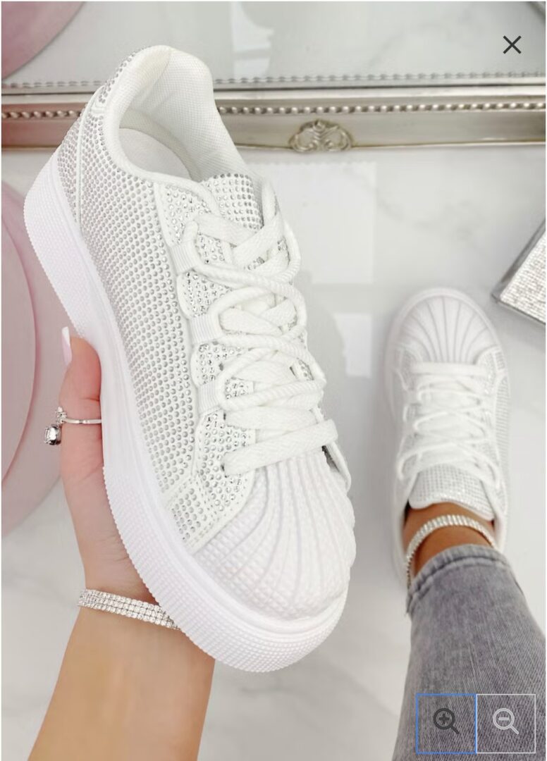 Sneakersy w kobiecej, dopracowanej wersji – klasyczna forma połączona z błyszczącymi zdobieniami, które pięknie odbijają światło i robią efekt „wow” przy każdym kroku.