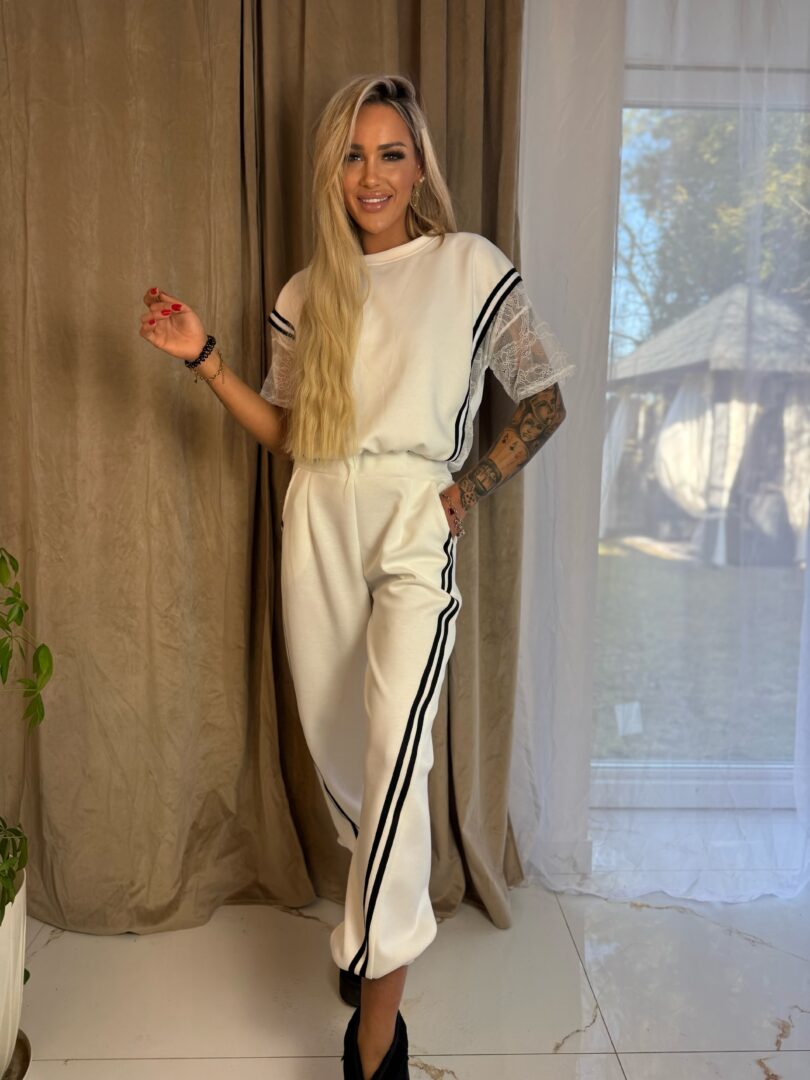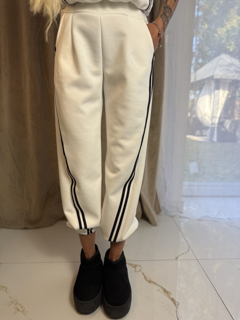 Boczne lampasy w kontrastowym kolorze optycznie wydłużają nogi i nadają całości dynamicznego, nowoczesnego looku. Elastyczna talia zapewnia komfort noszenia i idealne dopasowanie do figury.