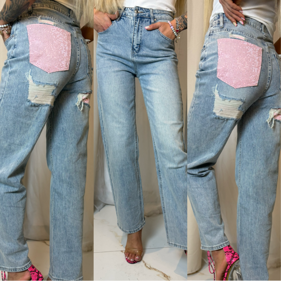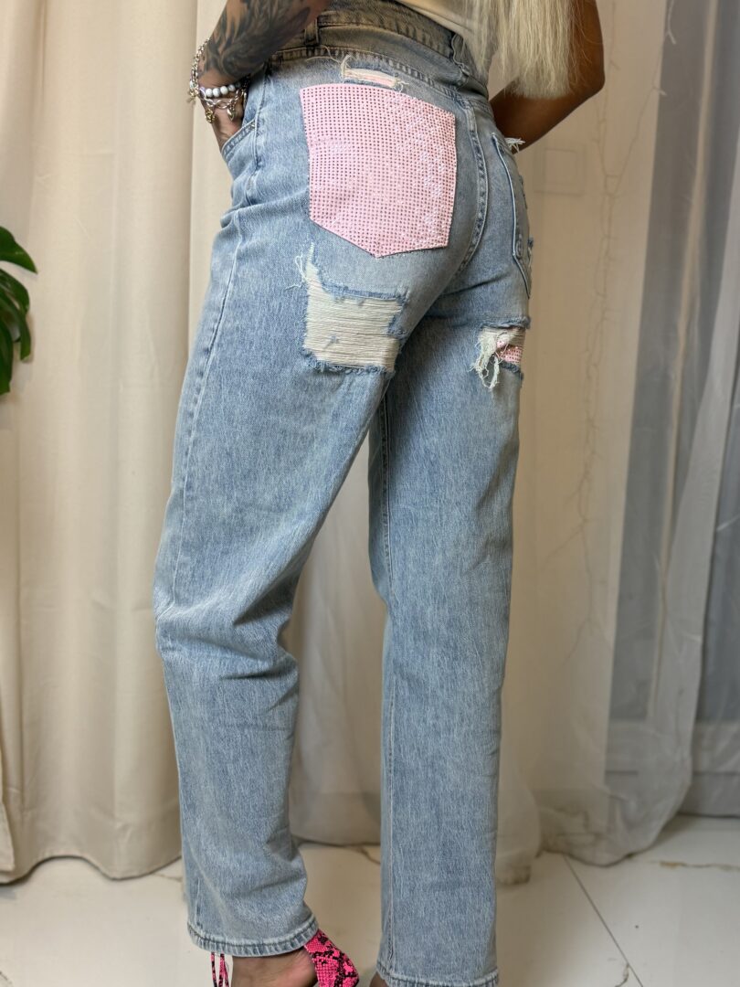 Wyjątkowe spodnie jeansowe stworzone dla kobiet, które lubią wyróżniać się detalami. Klasyczny krój połączony został z efektownym akcentem w postaci dekoracyjnej tylnej kieszeni, która dodaje całości charakteru i modowego pazura. Delikatne przetarcia nadają im modny, nonszalancki look, a fason świetnie układa się na sylwetce.