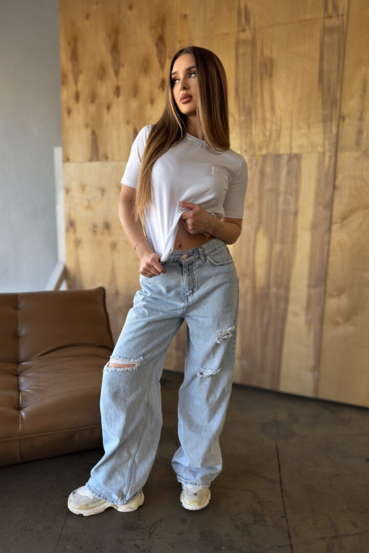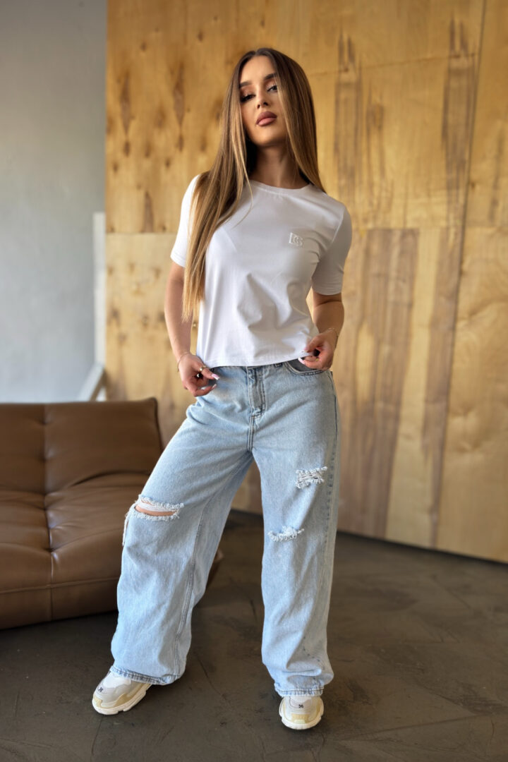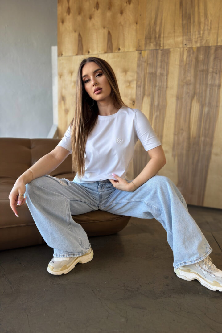 Opis produktu: T-shirt damski BG SAMPLE z wysokiej jakości dzianiny z domieszką elastanu. T-shirt o dopasowanym kroju. Na sercu logowanie monogramem BG w tonacji materiału.