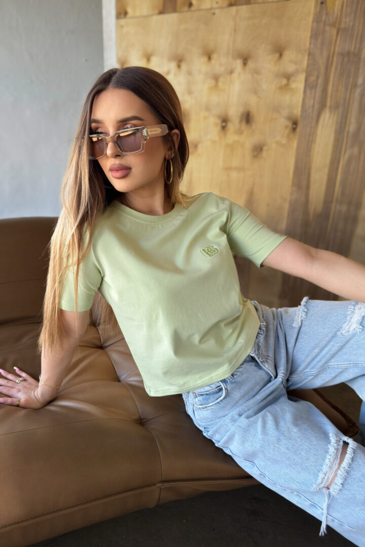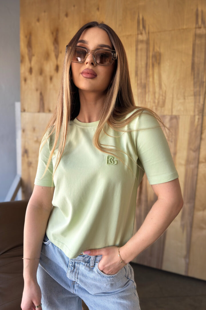 Opis produktu: T-shirt damski BG SAMPLE z wysokiej jakości dzianiny z domieszką elastanu. T-shirt o dopasowanym kroju. Na sercu logowanie monogramem BG w tonacji materiału.